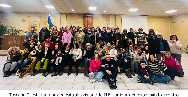 Con il desiderio di iniziare al meglio questo 2023, Anno dei giovani e del trionfo, presso il Centro culturale di Livorno si è tenuto il primo appuntamento a livello regionale per la visione dei filmati delle riunioni dei responsabili di centro. Questa nuova attività consiste nel rendere maggiormente fruibili questi video per tutti i membri ed essere sempre di più a ritmo con l’attività della Soka Gakkai. La riunione dei responsabili di centro è sempre stata uno degli eventi più importanti della Gakkai, sin dai tempi del presidente Toda, è una fonte di energia insostituibile per lo sviluppo di kosen-rufu.