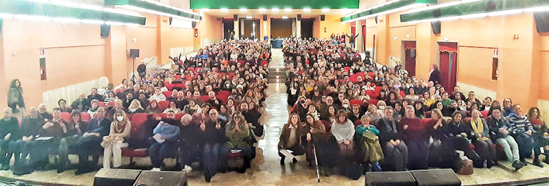 Il motto “Uniamoci in un forte Daimoku per ripartire insieme, con lo stesso cuore del maestro” ha accompagnato il corso del territorio Napoli che, domenica 19 febbraio, ha riempito il teatro Gelsomino di Afragola.