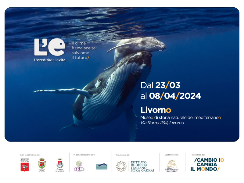 Il Museo di Storia naturale del Mediterraneo di Livorno ospita dal 23 marzo all’8 aprile 2024 la mostra “L’eredità della vita – il clima è una scelta, salviamo il futuro”, realizzata nell’ambito della campagna “Cambio io, cambia il mondo: pensare globalmente, cambiare interiormente, agire localmente” dell’Istituto Buddista Italiano Soka Gakkai.