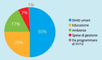 Di questi, al 31/12/2022, € 824.120,00 sono stati già assegnati a progetti nell’area Educazione mentre € 1.776.188,42 nell’area Diritti Umani.