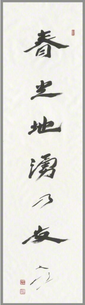 La terza e ultima calligrafia è “Amici Bodhisattva della Terra che irradiano la luce del sole della primavera”.