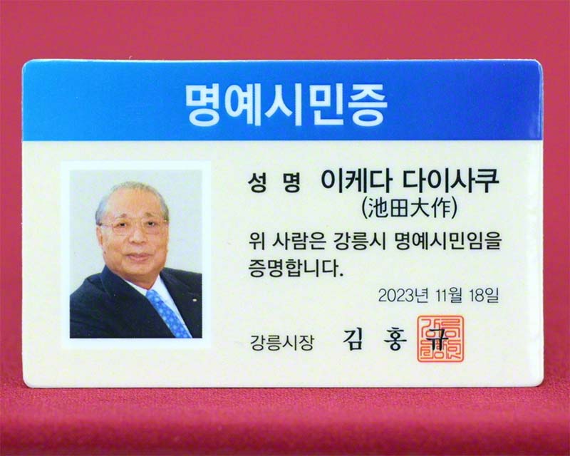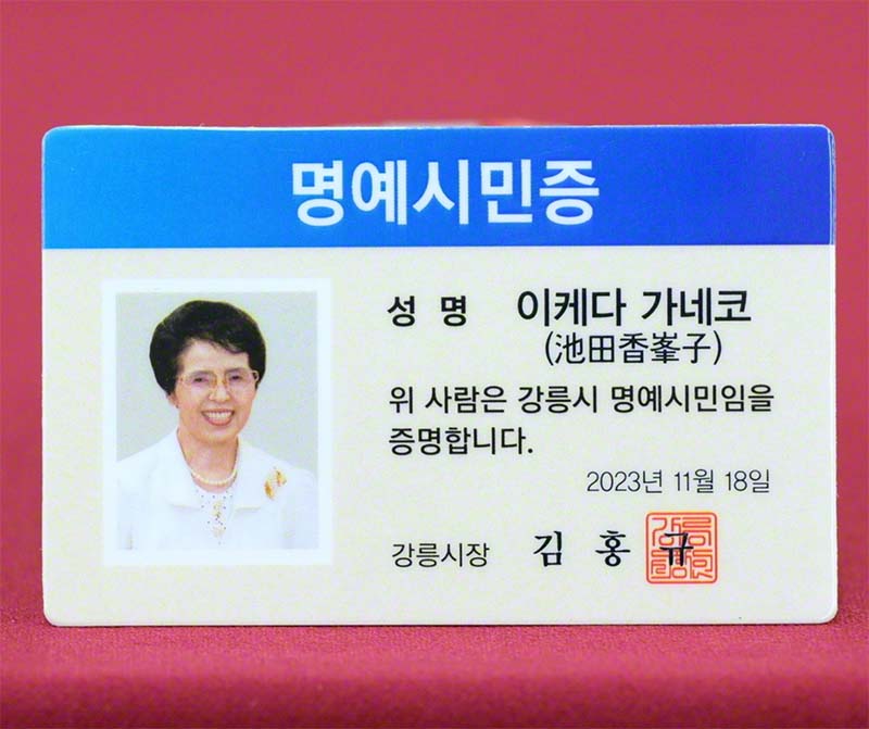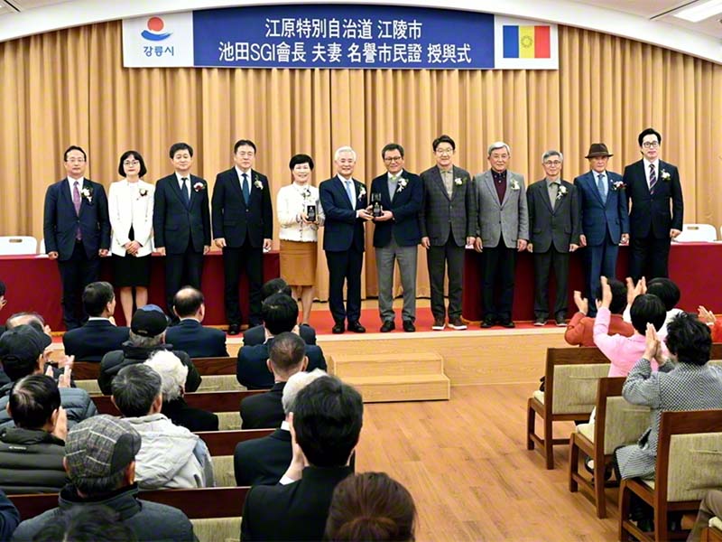 Nella giornata del 18 novembre la città di Gangneung, Corea del Sud, ha conferito la cittadinanza onoraria al maestro Daisaku Ikeda e a Kaneko Ikeda in virtù della loro leadership nello sviluppo delle comunità locali e per il loro contributo alla cultura e all’educazione.