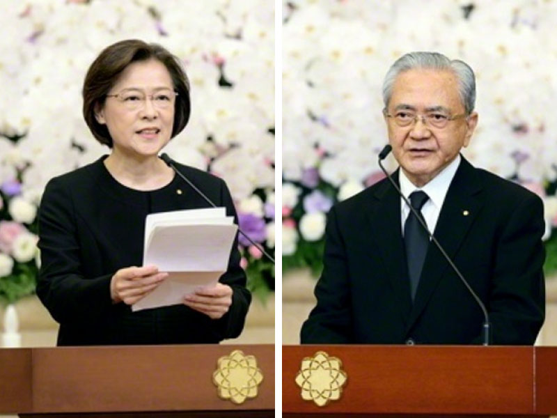 Insieme ai compagni di fede del Giappone e del mondo abbiamo solennemente letto il Sutra del Loto e recitato Nam-myoho-renge-kyo in questa cerimonia funebre della Soka Gakkai – la prima dopo quella organizzata per il secondo presidente Josei Toda – per onorare la nobile vita del nostro maestro Daisaku Ikeda, che ha dato un contributo così eccezionale e impareggiabile a kosen-rufu.