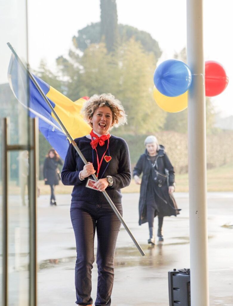 Claudia Mancinelli e Giada Garavaglia introducono il motto del corso “Fiera, con il sorriso vincerò!” con il sottotitolo “Costruiamo una terra di pace. Creiamo legami con altre persone che amano la pace”, affermando: