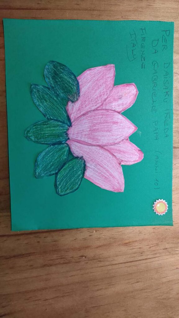 Il 21 marzo ha telefonato alla mamma un signore che mi cercava. Ci ha chiesto anche scusa per aver ritardato, ma non riusciva a trovarmi, perché era la prima volta che doveva recapitare un messaggio di Daisaku Ikeda a un bambino! Sono stato super felice!!!!