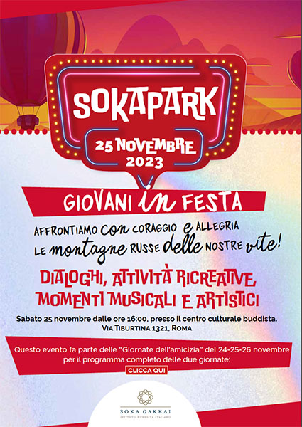 Si sono tenute da venerdì 24 a domenica 26 novembre le “Giornate dell’amicizia”, una serie di attività che hanno animato il Centro culturale di Roma in un fine settimana commovente che ha visto svolgersi anche le cerimonie commemorative per il nostro maestro Daisaku Ikeda, con la possibilità di apporre la propria firma di partecipazione alla cerimonia.
