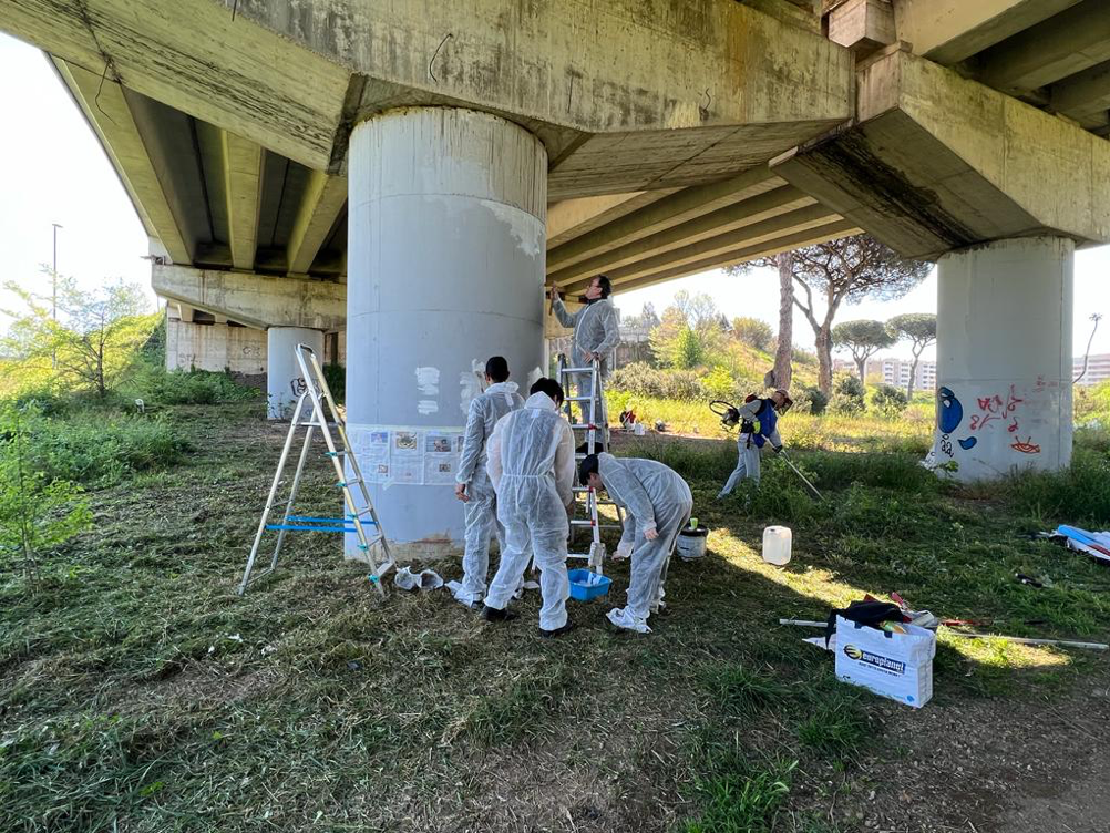 Insieme abbiamo decorato uno dei quattro pilastri che sostengono il ponte di Roma est, all’interno del parco archeologico. Ora restano altri tre pilastri da decorare e altrettanti appuntamenti che rappresentano l’occasione ideale per conoscere sempre più persone e rafforzarci come comunità.