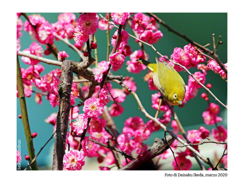 Didascalia della foto: I fiori di susino sono i primi a sbocciare durante il rigido inverno, sono “fiori che annunciano la primavera”. Febbraio 2020, Tokyo. Un uccellino conosciuto con il nome di “Occhio bianco giapponese”, forse attirato dal profumo, si è appollaiato sul ramo di un susino in fiore. Così come gli uccelli e le farfalle sono attratti dai fiori profumati, le persone sono attratte dagli incontri in cui si riuniscono persone ottimiste e sorridenti. A breve, persone di tutte le età si riuniranno per il primo zadankai dell’anno. Con la gioia di percorrere il cammino di maestro e discepolo, ripartiamo dalle nostre riunioni di Bodhisattva della Terra con il voto di kosen-rufu nel cuore, verso una “primavera di trionfo”!