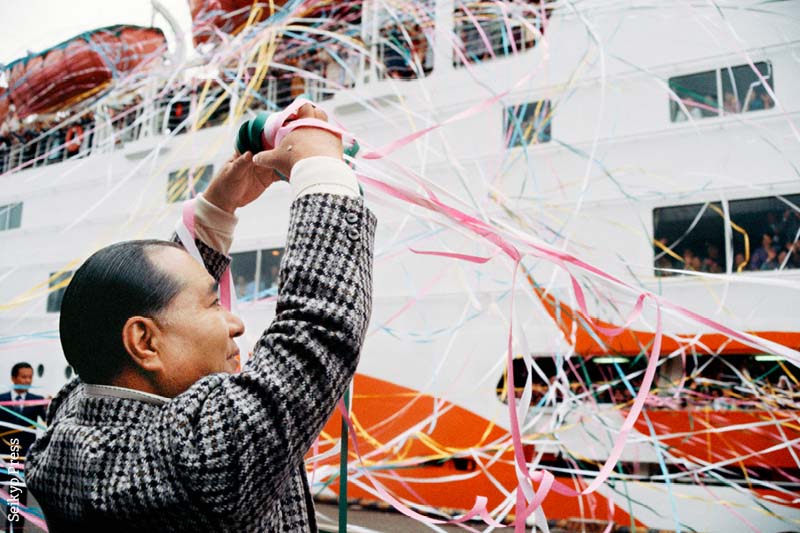 Il maestro Ikeda saluta i suoi compagni di fede che sono accorsi sulla nave Sunflower 7, maggio 1980, Yokohama