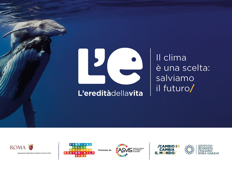 L’Istituto Buddista Soka Gakkai Italia parteciperà al Festival con la campagna Cambio Io Cambia, il mondo, oggi sabato 20 maggio a Roma, presso l’ex Cartiera Latina del Parco Appia Antica, in via Appia Antica 42, in cui sarà possibile visitare dalle ore 10:30 alle ore 18:30 la mostra L’eredità della vita. Il clima è una scelta: salviamo il futuro.