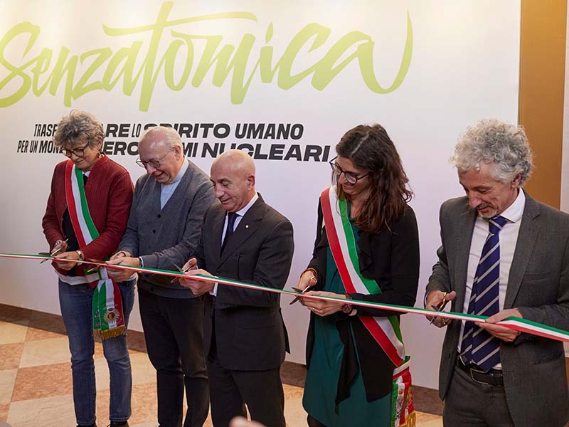 La mostra “Senzatomica. Trasformare lo spirito umano per un mondo libero dalle armi nucleari” si inserisce all’interno del “Festival della Pace” ed è stata realizzata grazie ai fondi dell’8×1000 dell’Istituto Buddista Italiano Soka Gakkai. È una esposizione itinerante che farà tappa in diverse città italiane.