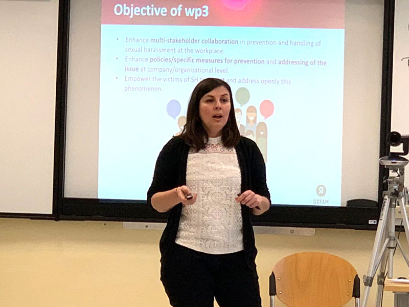 Un altro impegno che portiamo avanti come Oxfam è prevenire e contrastare le molestie sul luogo di lavoro perché, come sappiamo, chi subisce molestie, abuso, discriminazioni sul luogo di lavoro al 90% sono donne. È il tema del “soffitto di cristallo”, per cui le donne fanno fatica ad accedere a posizioni di potere o di leadership all’interno del lavoro creando ambienti di lavoro che considerino e siano rispettosi dei loro bisogni e necessità. Prevenire e contrastare le molestie in ambito lavorativo significa intercettare un tema ancora sommerso e molto diffuso in ambito lavorativo, che ha radici profonde a livello sociale e culturale.