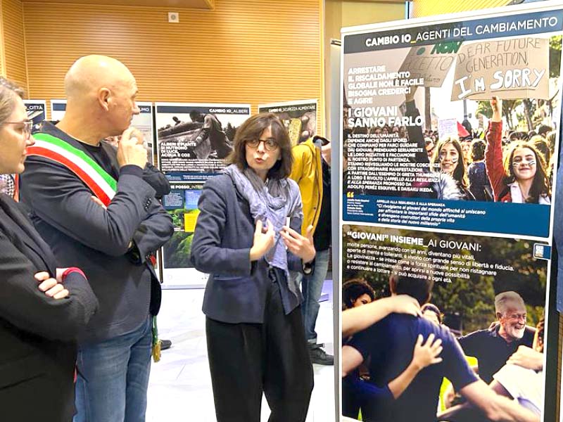 In una sala gremita, prima del taglio del nastro si sono alternati gli interventi di rappresentanti dell’Istituto e delle istituzioni locali. In apertura Roberto Francini, responsabile del Comitato “Cambio io, cambia il mondo” ci ha portato a riflettere su quale futuro vogliamo realizzare e che cosa intendiamo lasciare alle generazioni future, citando le parole di Daisaku Ikeda: «Come possiamo dunque intendere la sostenibilità? In termini semplici, penso che si potrebbe descrivere così: un modo di vivere nel quale ci si astiene dal ricercare la propria felicità a spese di quella degli altri; la determinazione di non lasciare in eredità alla prossima generazione il posto in cui viviamo, e il pianeta nel suo complesso, in condizioni peggiori di quando ci siamo arrivati noi; una società in cui il futuro non sia sacrificato ai bisogni passeggeri del presente ma vengano operate decisioni e scelte ottimali avendo in mente l’interesse dei nostri figli e dei nostri nipoti” (Proposta di pace 2012).