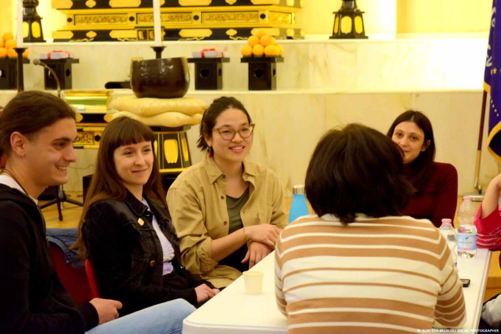 Si è poi tenuta la lezione sul Gosho L’eredità della Legge fondamentale della vita a cura di Luca Riccioni, Chiara Stefanacci, Andrea Yuji Balestra e Diana Albo, responsabili della redazione del Volo Continuo.