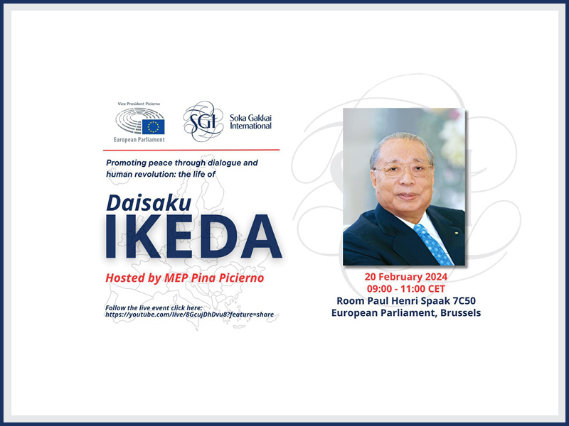 Martedì 20 febbraio presso il Parlamento europeo a Bruxelles si terrà un evento per celebrare la vita del presidente della SGI Daisaku Ikeda, organizzato dalla vicepresidente del Parlamento europeo Pina Picierno in collaborazione con la SGI europea.