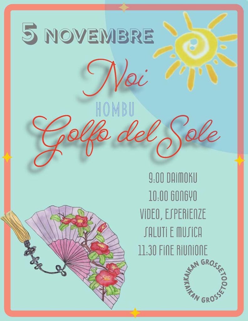 L’hombu Golfo del Sole, che è distribuito nella parte nord della provincia di Grosseto, nella mattina di domenica 5 novembre ha organizzato, grazie alla piena collaborazione tra giovani e adulti, l’evento “Noi Golfo del Sole” al Centro culturale di Grosseto. L’incontro è stato preparato per recitare Daimoku insieme e incoraggiare tutti i presenti: infatti era aperto a chiunque avesse il desiderio di partecipare. Ci sono stati momenti profondi e gioiosi, grazie alle due bellissime esperienze raccontate, ai video e agli incoraggiamenti dei responsabili del Gruppo giovani, che hanno trasmesso con tutto il loro cuore il grande desiderio di rafforzare i legami di fiducia tra le persone dentro e fuori la Soka Gakkai, in modo da creare le basi per la costruzione di una società pacifica dove regni il rispetto della dignità della vita.