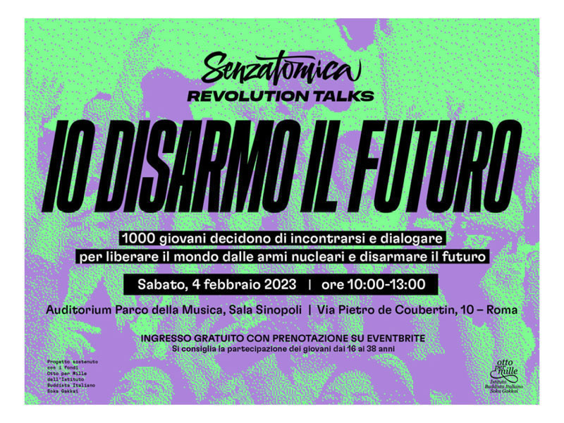 Sabato 4 febbraio più di mille giovani si incontreranno a Roma all’Auditorium Parco della Musica per dialogare sulle strade da percorrere per liberare il mondo dalle armi nucleari e disarmare il futuro.