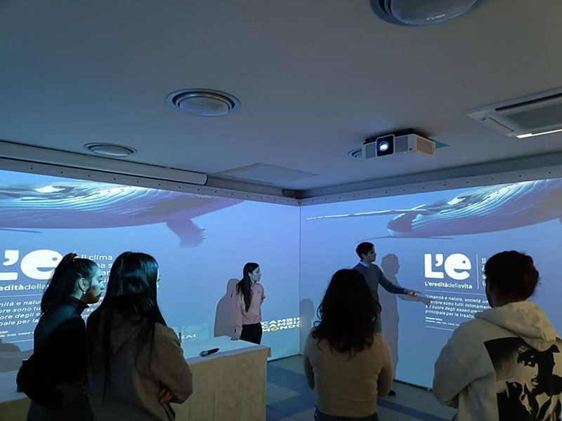 Dopo le esposizioni di Chiavari e Reggello, il 14 dicembre la mostra “L’eredità della vita” è stata presentata ad alcune classi dell’Istituto di Istruzione Superiore Tonino Guerra di Cervia, in provincia di Ravenna. Una sessantina di studenti ha visitato la mostra nell’aula immersiva dell’Istituto grazie al sostegno dei membri locali.