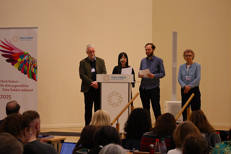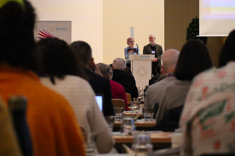 In apertura della Conferenza europea Suzanne Pritchard e Robert Harrap, co-presidenti della SGI Europa, hanno approfondito il significato del tema del 2025, Anno in cui volare ancora più in alto per una Soka Gakkai giovane in tutto il mondo.